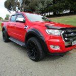 Those black over flares really complete the look, don’t they? Red body with all that black trim – bonnet protector, weather shields, over flares, and alloys. That’s a seriously good-looking ute that’ll turn heads at the job site, camping or on the boat ramp!